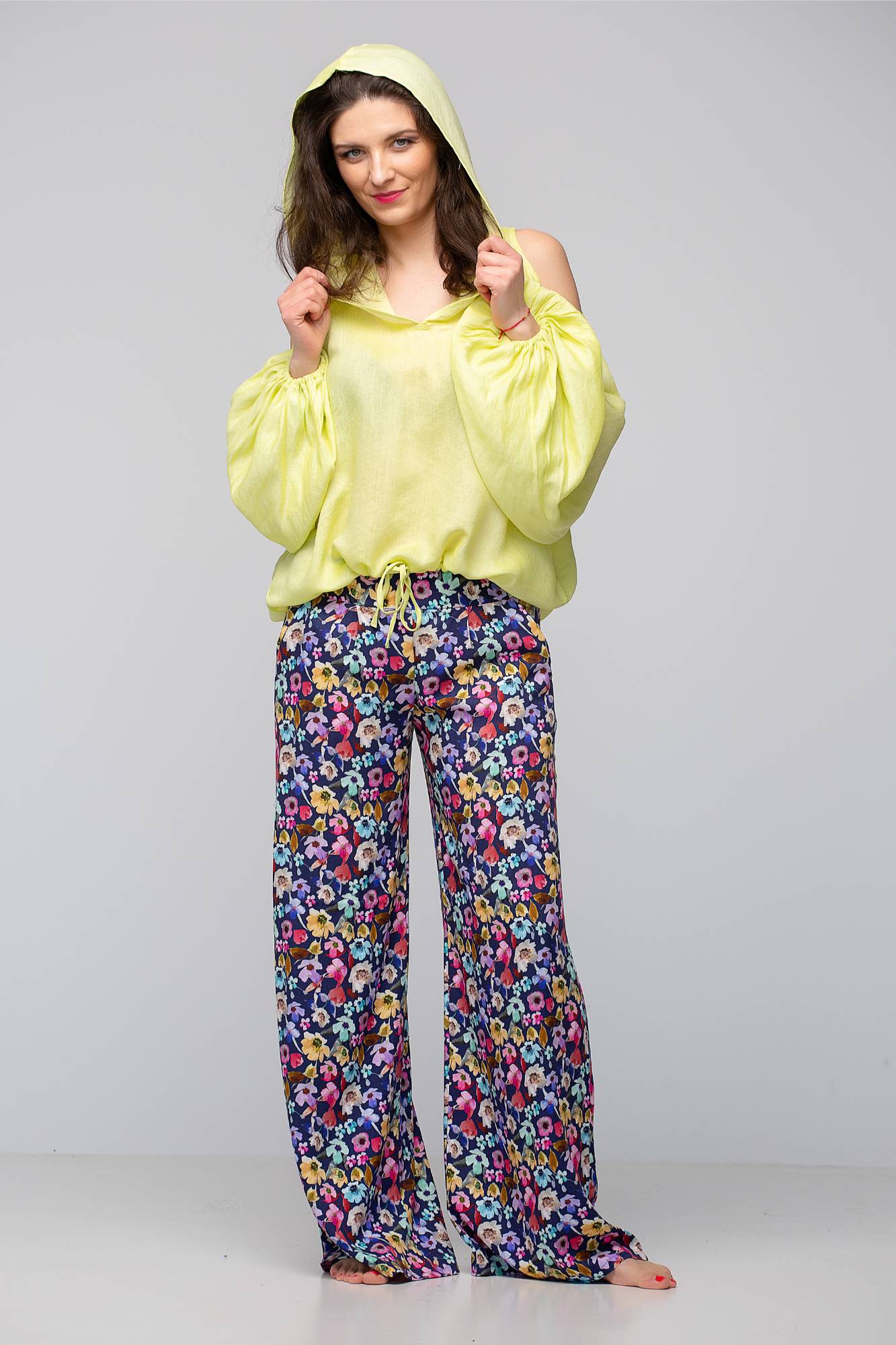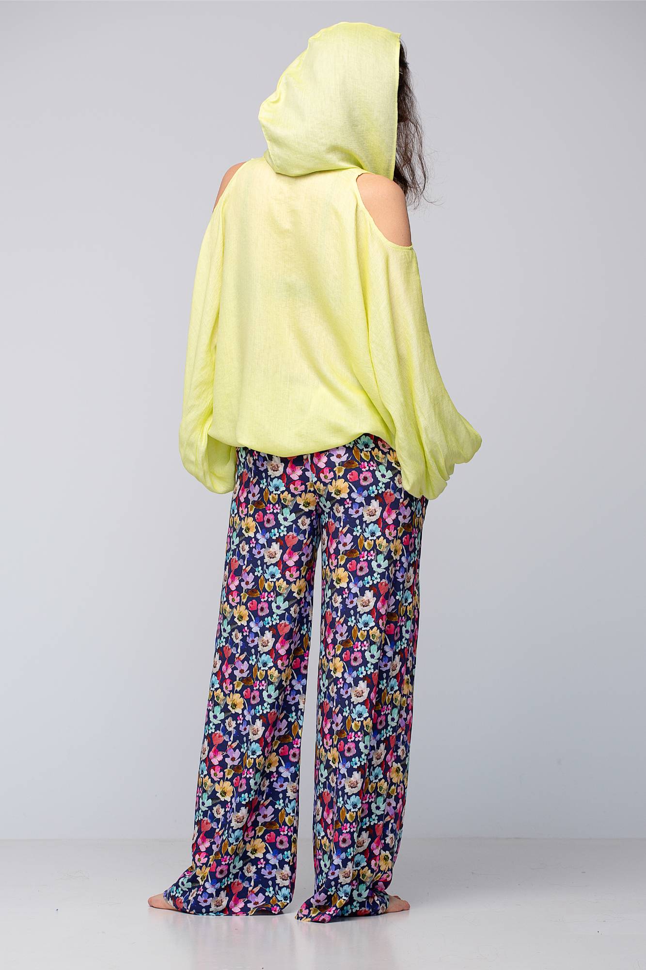 Hanorac din vâscoză cu glugă, galben